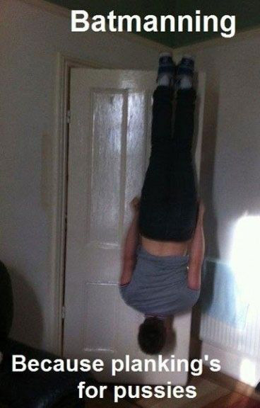 He refuses to get beaten by a woman, so he strains real hard.